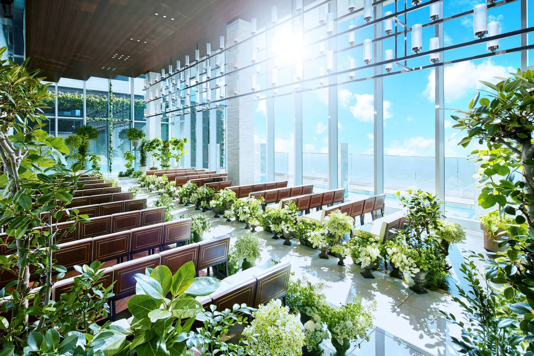 都会の街並みにスタイリッシュな佇まいが映えて、おふたりとゲストを優雅な高級レジデンスさながらの別世界へ誘います。お好みに合わせて選べる個性豊かな全天候型ゲストハウスが特別な日の舞台。フロア貸切の贅沢な1日をお楽しみください。